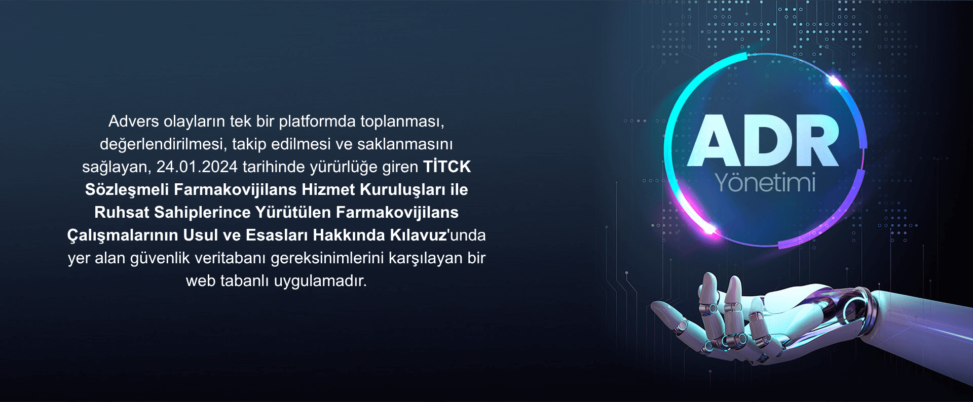 Advers olayların tek bir platformda toplanması, değerlendirilmesi, takip edilmesi ve saklanmasını sağlayan, TİTCK Farmakovijilans Çalışmalarının Usul ve Esasları Hakkında Kılavuz’unda yer alan güvenlilik veritabanı gereksinimlerini karşılayan bir web tabanlı uygulamadır.