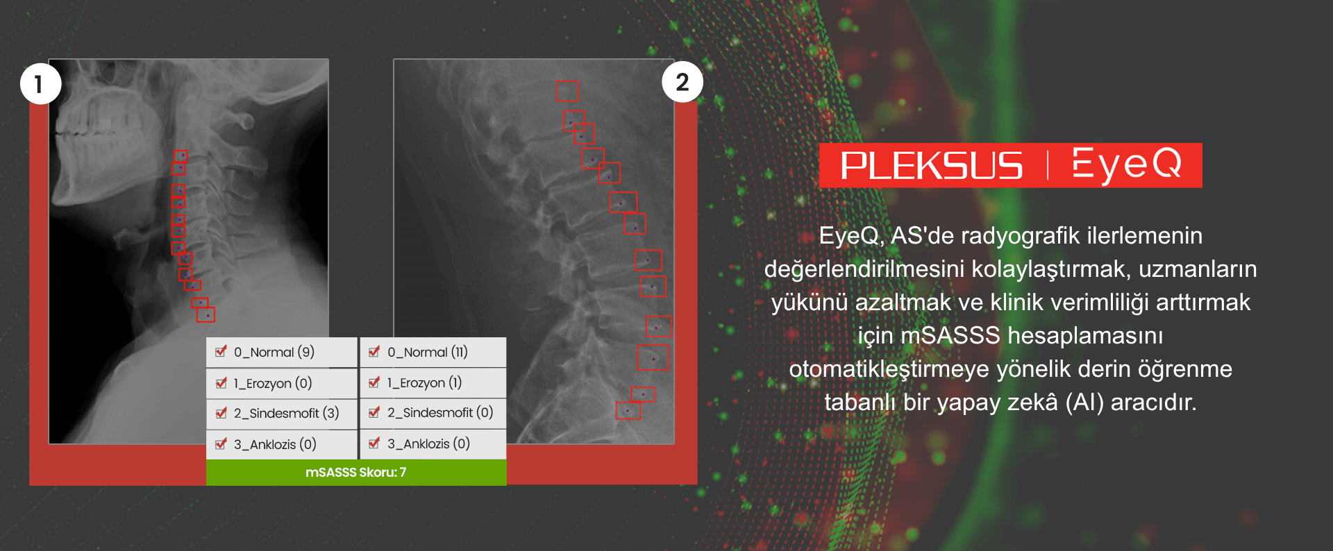 Ankilozan Spondilit (AS) hastalığında ilerlemenin radyografik değerlendirilmesini kolaylaştırmak, uzmanlar üzerindeki yükü azaltmak ve klinik verimliliği artırmak için mSASSS hesaplamasını otomatikleştiren derin öğrenmeye dayalı bir yapay zeka (AI) aracıdır.